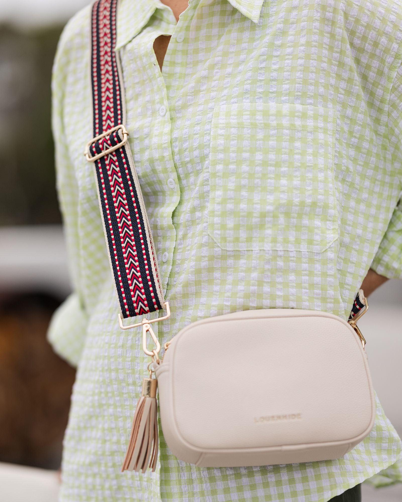The Louenhide Eddie Guitar Strap is the perfect accessory for any colour lover. Available in a range of colourful statement patterns, effortlessly style this women’s bag strap with your go-to Louenhide bag to add a pop of colour and touch of fun to your everyday look. With a textured webbing finish and light gold hardware embellishments, the Eddie Guitar Strap is sure to turn heads wherever you go.