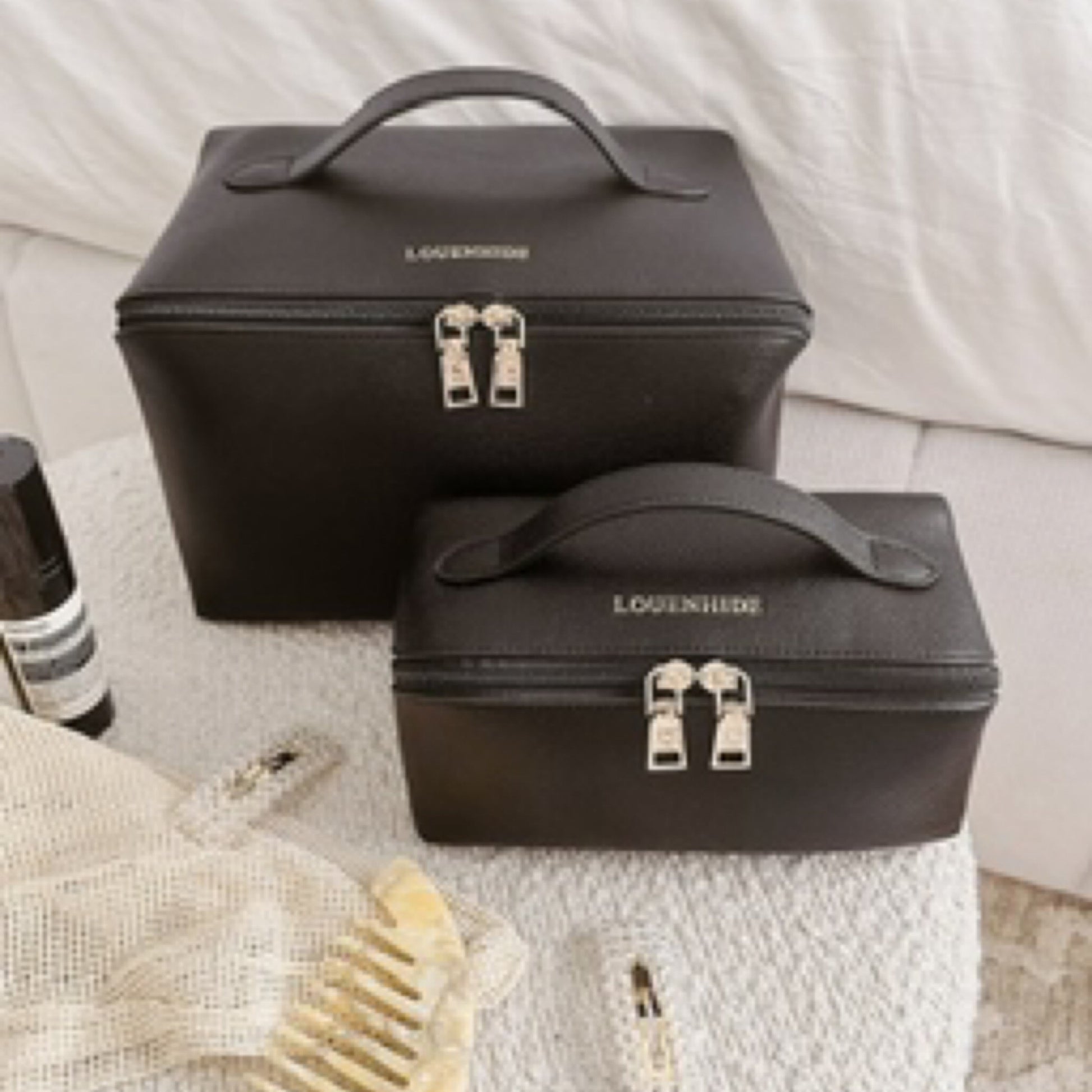 The Louenhide Orion & Ellis Cosmetic Case Set was designed with ultimate convenience and organization in mind. No more digging around or struggling to find what you need, with the wide opening and unique silhouette, these two toiletry bags open to lie completely flat on any counter, giving you easy access to all your toiletries at once. Store your larger toiletries in the Orion within its two large main compartments, and your make up essentials in the smaller Ellis Cosmetic Case. Whether you are a jetsetter, or simply seeking a well-organised solution for your beauty essentials, the Orion & Ellis Cometic Case Set is the answer to all your needs.