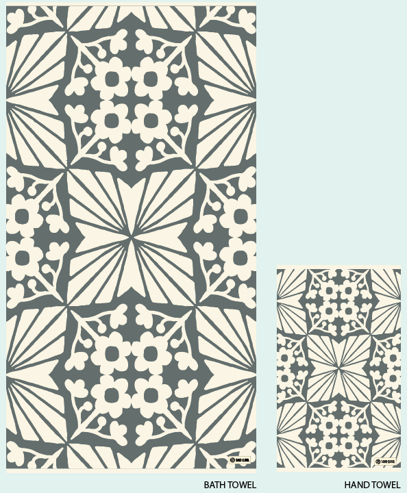 Tile design bath bundle, 2-ply, double terry, made of Turkish organic cotton, yarn-dyed, braided tassels, this bath bundle has 2 bath towels and 2 hand towels, the double plush pile gives these towels a softer hand feel with a good design aesthetic. Approx 36" X 67" Bath; 18" X 30" Hand (90 X 170cm Bath; 45 x 75cm Hand)